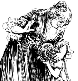 Mamá entra y con la mano libre me da un abrazo y me besa la frente,