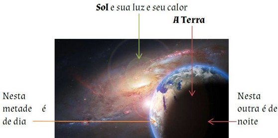 sobre si mesma...e a luz do Sol ilumina uma metade...ai se faz o dia...na outra metade é a noite.